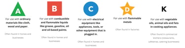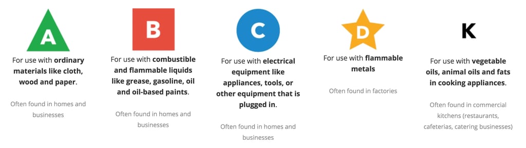 There are five primary types of fire extinguishers, each designed to put out different kinds of fires: